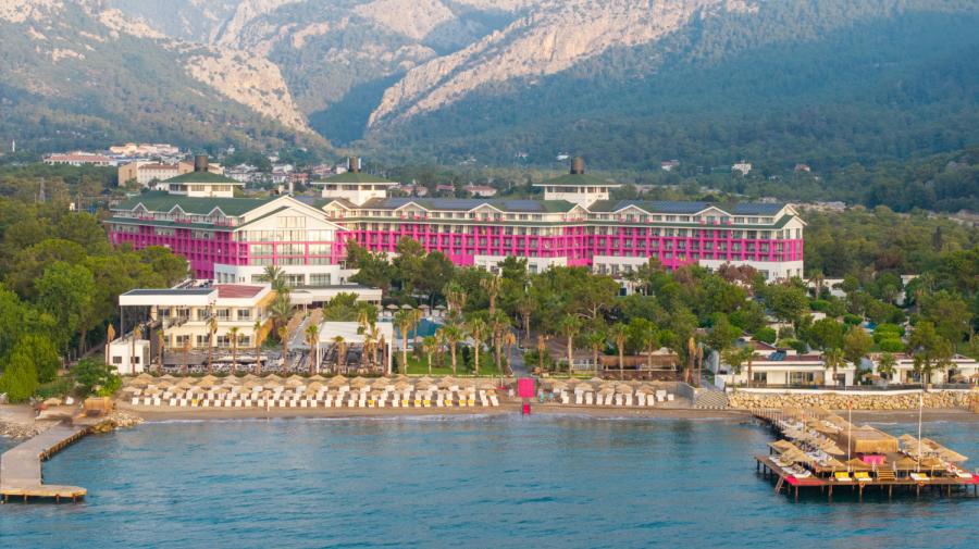 Расположенный на живописной территории площадью 140 000 кв.м., отель находится всего в 45 км от аэропорта Анталии, в 40 км от центра города и в 8 км от живописного курорта Кемер, что делает его удобным для туристов со всего мира.