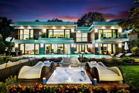 1 вилла. Прямой вид на море. Двухэтажная вилла на первой береговой линии. На первом этаже расположены 2 спальни, гардеробная, гостиная, столовая, кухня, 2 ванные комнаты. На втором этаже 2 спальни, 2 гардеробные, 2 ванные комнаты, 2 террасы, 5 LED - телевизорoв. Услуга личного дворецкого предоставляется бесплатно. На территории виллы имеется собственный бассейн, паровая комната, турецкая баня и сауна.